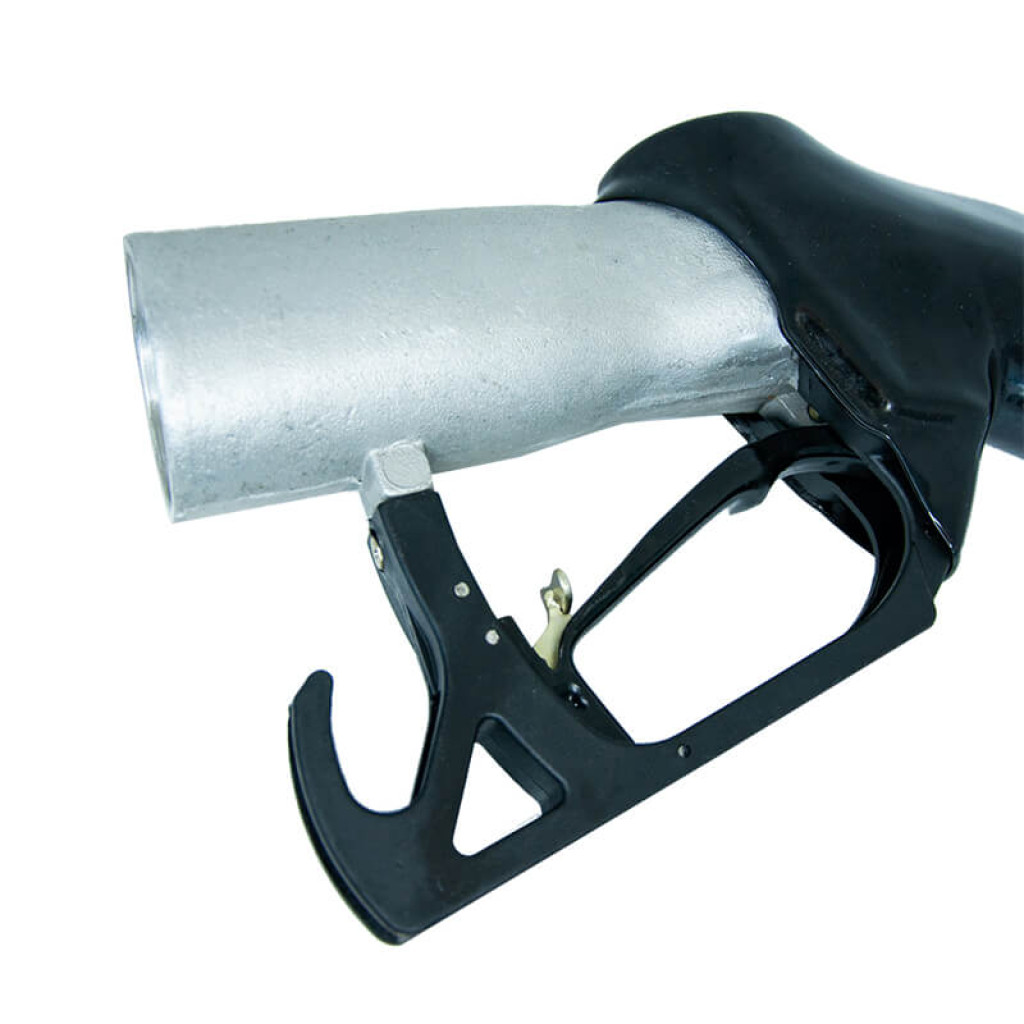 Двухуровневый фиксатор курка позволяет выбирать мощность подачи топлива: верхний уровень (полная мощность) для больших крутых заправочных горловин, нижний уровень (половинная мощность) для горловин с плохой деаэрацией, чтобы избежать обратных выбросов топлива.