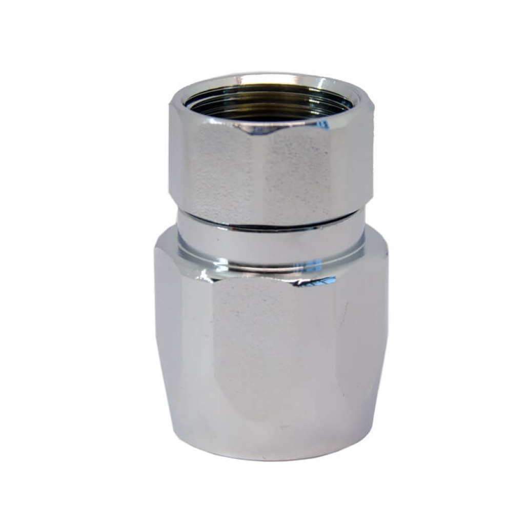 Соединительный фитинг ZVA M16-3/4" Cr предназначен для подключения топливного шланга с внутренним диаметром 16 мм к заправочному пистолету или другим элементам топливораздаточной колонки. Изделие имеет внутреннюю резьбу 3/4" (тип соединения "мама-мама") и хромированное покрытие, устойчивое к коррозии.