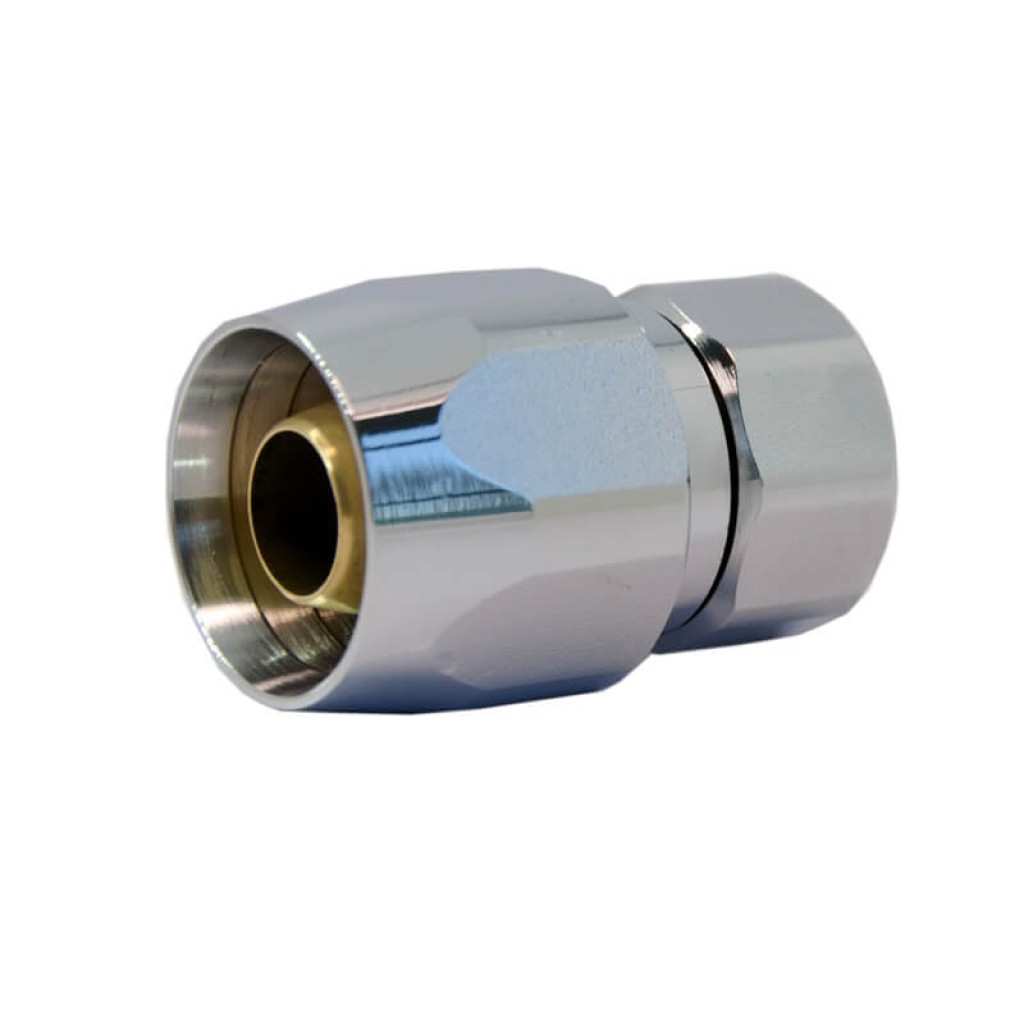 Фитинг устанавливается на шланг с помощью стандартного сантехнического инструмента. Для герметизации используйте ФУМ-ленту или уплотнительные кольца. Не превышайте допустимый крутящий момент при затяжке.
