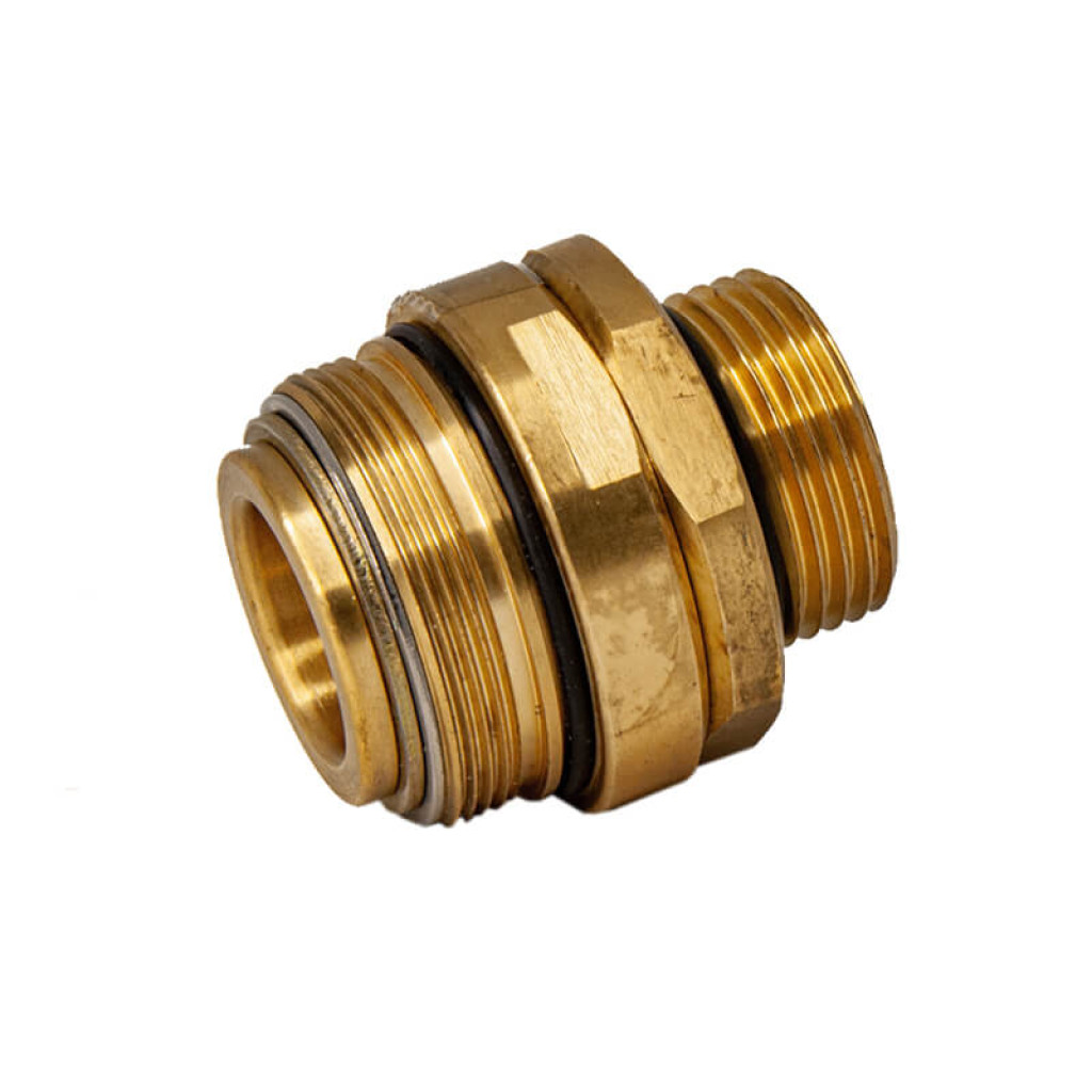 - Тип соединения папа-папа — наружная резьба 1" с обеих сторон для подключения к шлангу и пистолету